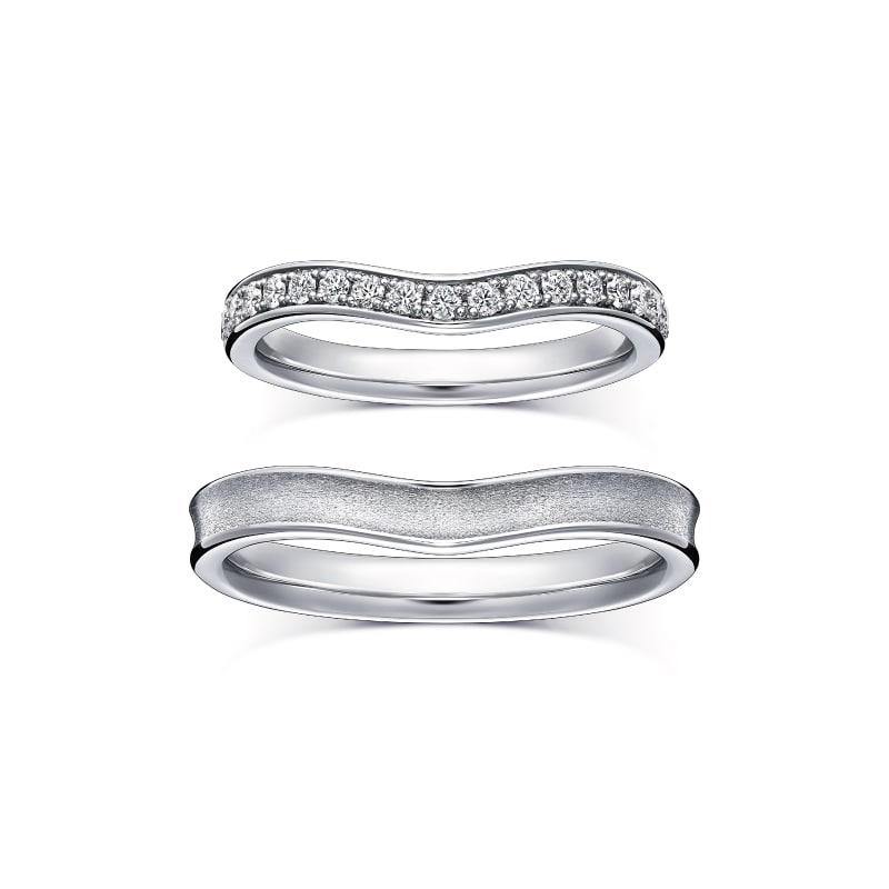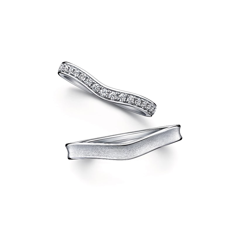 壮観な建築様式を持つNYの劇場の名を冠したリング。なめらかで美しいV字フォルムに、21石のダイヤモンドが華やかに輝きます。もう片方のリングも、ほどよい厚みとマットな質感の中に煌めきを秘めたテクスチャーがニュアンスある陰影を生み、一味違った個性を放ちます。