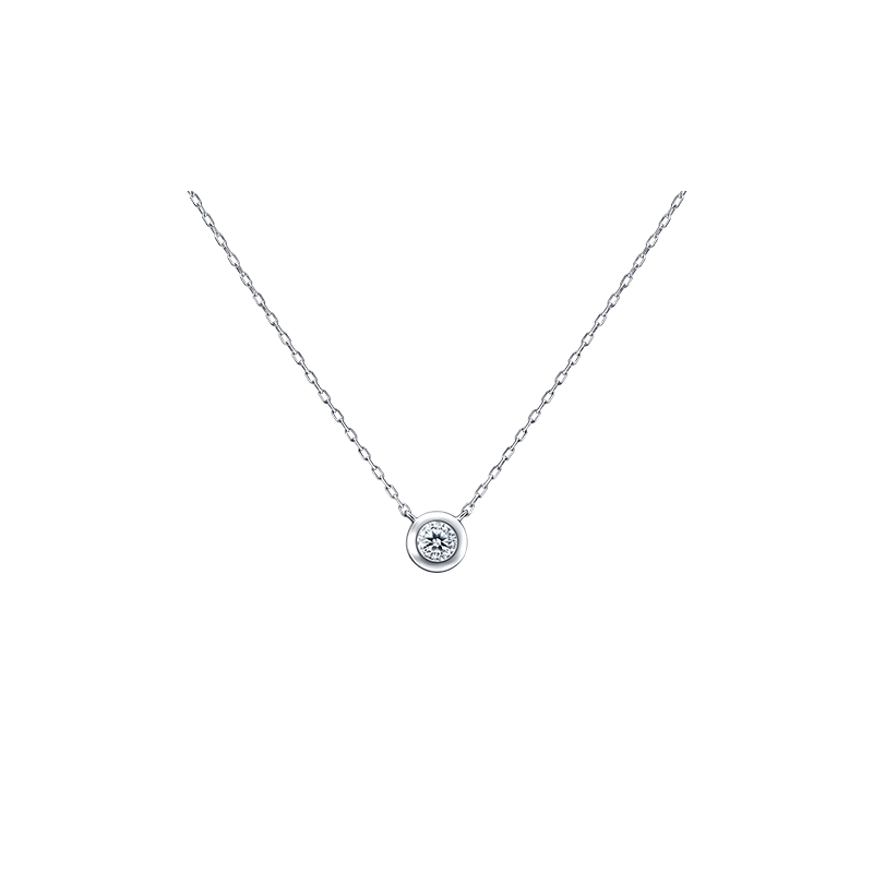 途切れることのない円(縁)を、日々のお守りに。ひと回り大きな存在感を放つベゼルセッティングのダイヤモンドが、極細のチェーンによって胸もとに浮かび上がるように際立ちます。フラットかつシンプルなデザインで、日常使いに適した万能ネックレスです。