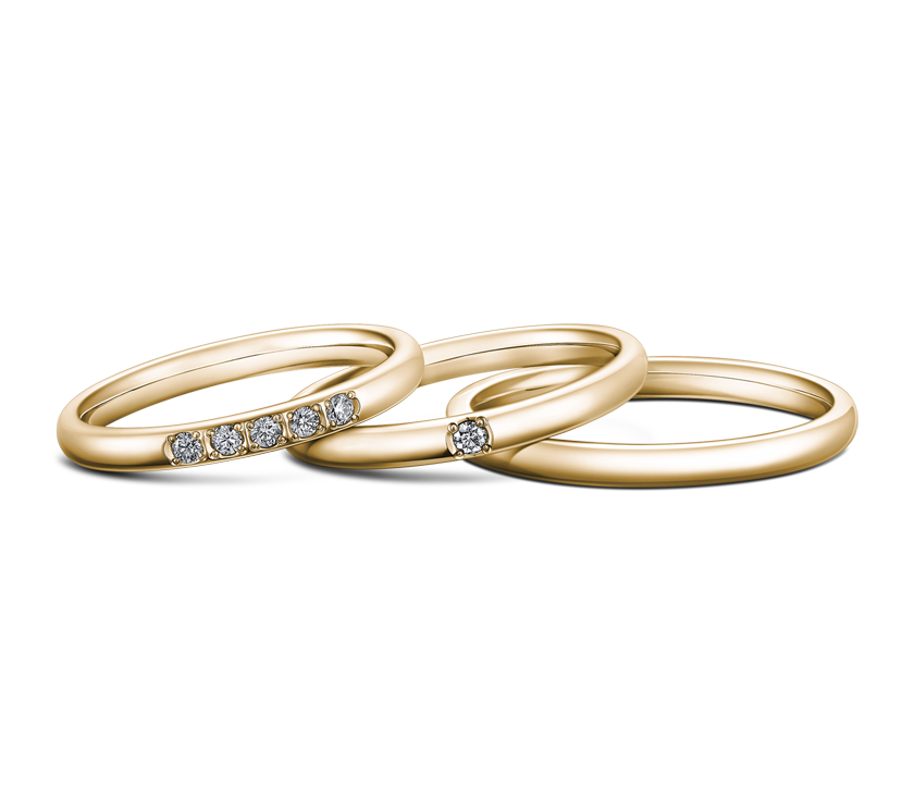 「至福」を意味する名前に、ふたりらしく生きてゆく喜びを込めて。幅や素材、ダイヤモンドの数を選べる楽しさに加え、ボリュームを感じさせない上質な着け心地、ダイヤモンドがひときわ大きく引き立つデザインなど、こだわりの詰まったコレクションです。