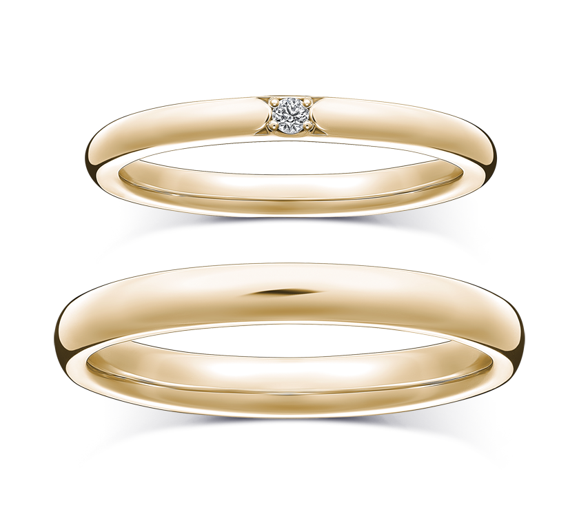 “ピンクレーベル コレクション”は、華やかさ、初々しさをモチーフにしたコレクションです。リング部分にピンクゴールドを用いたものを中心にしながら、イエローゴールドのものなども含めたラインナップで、爽やかな女性らしさを演出します。