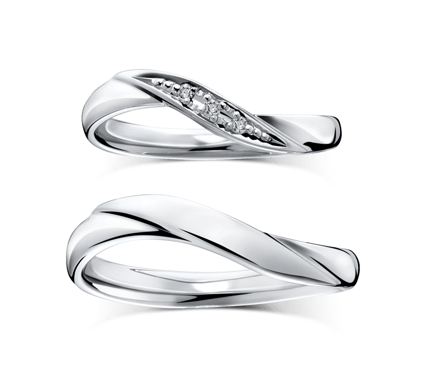 ウェーブは、リングが曲線を描いた形状の指輪です。柔らかで上品な印象を与えます。