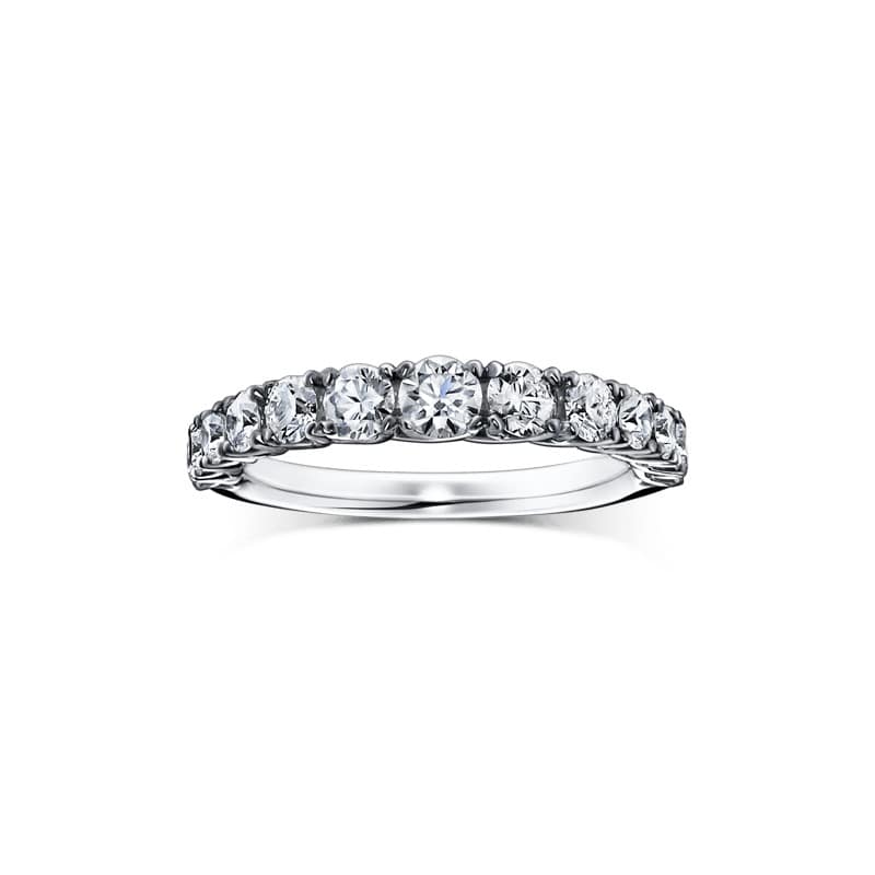 ダイヤモンドを石畳のように敷き詰めた、パヴェと言われるハーフエタニティリング。『ラザール ダイヤモンド』らしいきらめきが特長です。