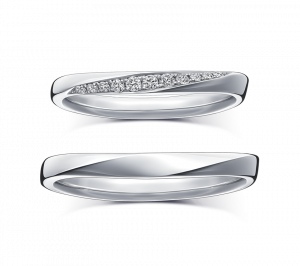 片方のリングは斜めのエッジラインを丹念に際立たせ、