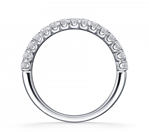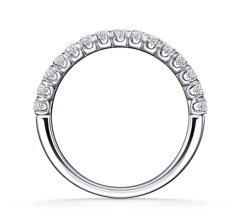 横顔まで美しいダイヤモンドが華やかな輝きを放つ、クラシカルなハーフエタニティリング。